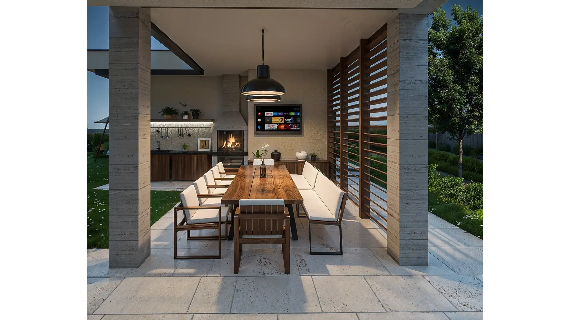 - Покрита веранда: Преходът към покритата веранда е плавен, създавайки идеално място за забавления и отдих на открито при всякакви метеорологични условия.